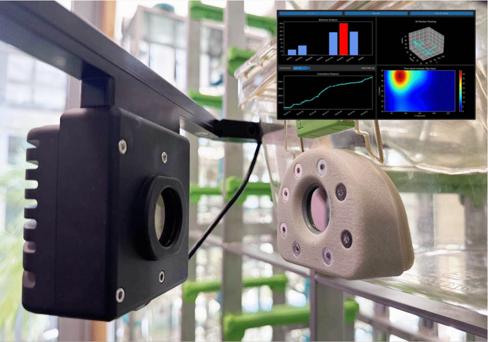 O ZebraTower é um sistema plug-and-play compacto para rastreamento de zebrafish adultos e outras espécies. É ideal para quantificar locomoção e endpoints comportamentais em 2D. É compatível com diversos labirintos e pode ser facilmente atualizado para rastreamento tridimensional (3D) com o GranView.