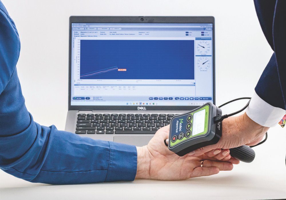 O AlgoMed é o primeiro algómetro digital da Medoc baseado em software. Ele mede o limiar e a tolerância à dor por pressão em músculos e articulações. Oferece feedback visual e auditivo em tempo real, garantindo uma taxa de pressão constante e precisa para avaliações de TS e CPM.