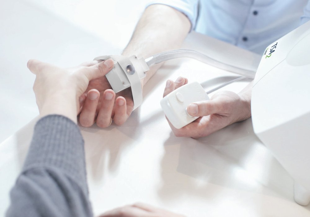 O Q-Sense é um dispositivo portátil de QST, projetado para medir limiares térmicos de calor, frio e dor com alta precisão. Facilita a detecção de neuropatias de pequenas fibras, conta com protocolos pré-programados e oferece suporte confiável para pesquisa clínica e estudos de sensibilidade somatossensorial.